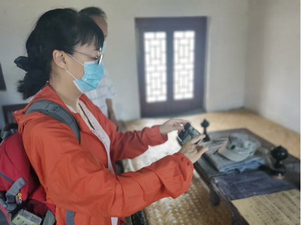 这里,党旗猎猎、红歌飘扬,依山就势而建的《没有共产党就没有新中国》纪念馆,采取单层连体的建筑方式,造型别致,风格独特。三个展厅和一个创作地旧址,完整地保存着曹火星当年创作《没有共产党就没有新中国》的词曲原稿。